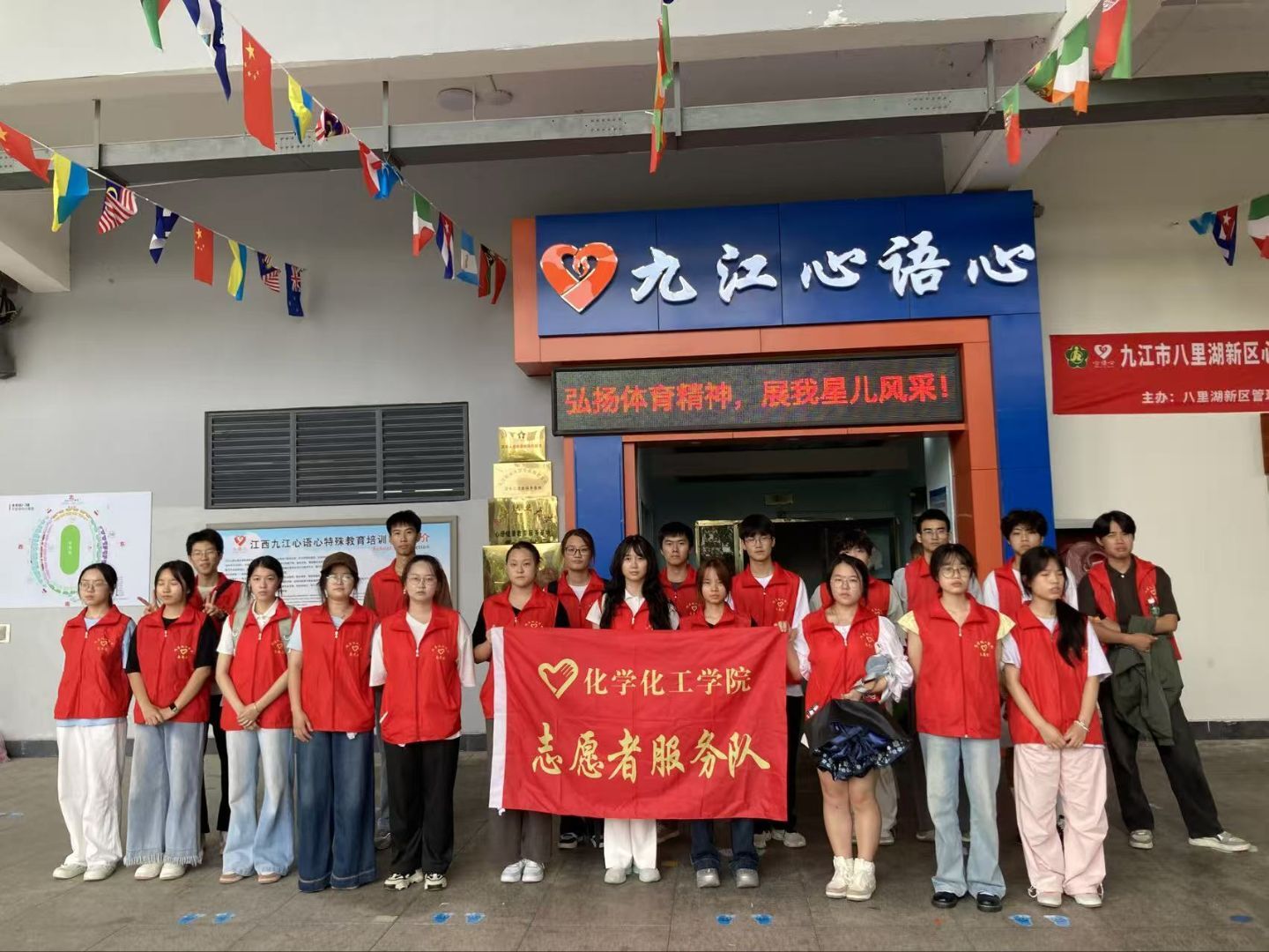 为守护特殊儿童的运动梦想,传递社会关怀,2025年9月30日,一场主题为“弘扬体育精神,展我星儿风采”的运动会在九江心语心学校热烈举行,二十名九江学院化学化工学院的志愿者化身“爱心守护者”,全程陪伴孩子们度过了一段充满欢笑与力量的时光。。