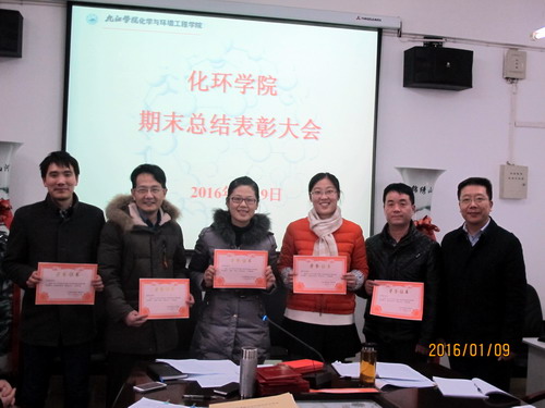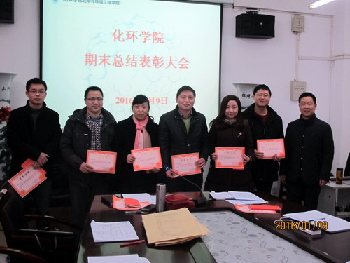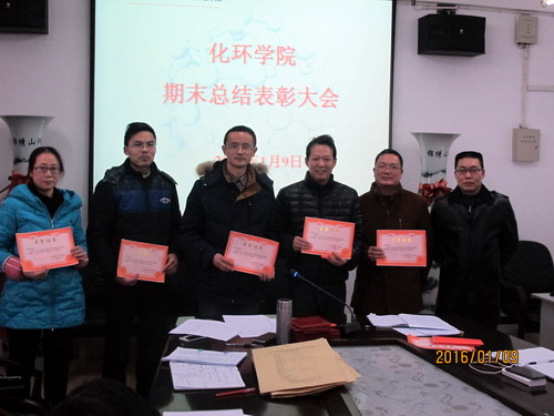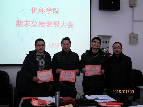 刘新强书记宣读了在本学期学院举行的优秀教研室和优秀实验室评比结果、院教学竞赛、实验竞赛、全国化工设计大赛、江西省首届实验技能大赛、院优秀班主任、考研率最高班级、就业先进个人等获奖名单。他希望大家在2016年要再接再厉,为学院做出新的贡献。