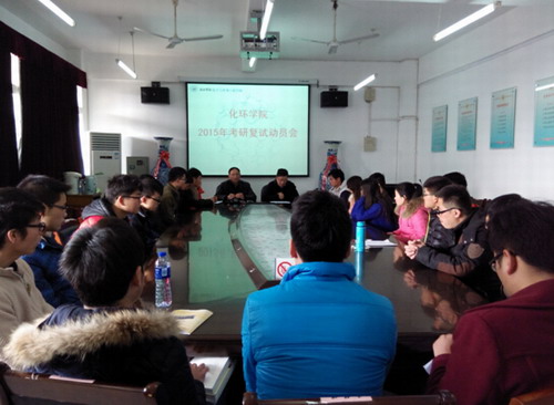 近期,各院校研究生分数线纷纷出炉,参加复试的同学也进入了备战阶段。为帮助同学们理清思路,顺利通过复试关,3月12日上午,化环学院在五楼会议室召开了2015届毕业生考研复试动员大会。院长严平、党委书记刘新强、学生科科长吴敏、部分骨干老师及考研上线同学参加了动员会。会议由刘新强主持。