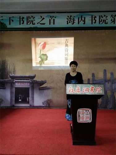 此次国学讲堂进行了一个多小时,吴老师热情洋溢的演讲赢得了大家的一致好评。通过开展国学讲堂,让同学们感悟了一番古典诗歌的魅力。在拥有“千年学府,文化圣地”美称的白鹿洞书院进行国学知识讲堂,相信会让同学们印象深刻。