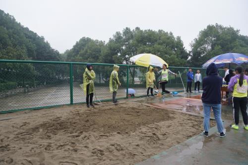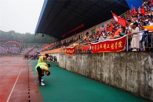赛场上,运动健儿们不惧风雨,为自己的目标和学院的荣誉奋力拼搏,每一次精彩的跳跃划出最美的弧线;每一棒精彩的交接激荡新的冲刺,每一圈耐力长跑,坚毅的瞬间振奋人心。幕后,为了让运动员们能更好地发挥自己的水平,化环学院体育部后勤服务志愿者们在场外设立了化环学院大本营,为化环学院的运动健儿们保驾护航。场上,凛冽的寒风,湿滑的场地,飘飞的雨滴,丝毫没有影响到坐在看台上的同学们,他们团结一心,奋力击鼓!呐喊!挥旗!为运动员们加油助威!与运动员们共同进退!