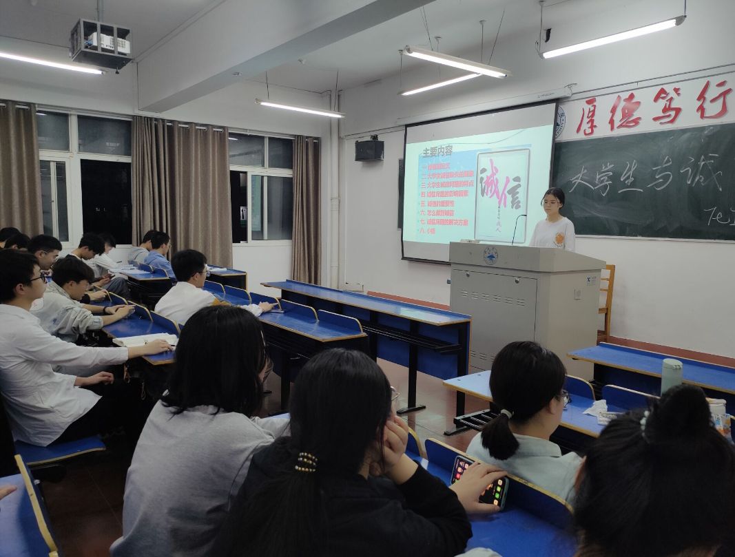 3月13日晚,化学化工学院开展“诚信大学生”主题班会,班会由各班班长主持,全体同学积极参与。