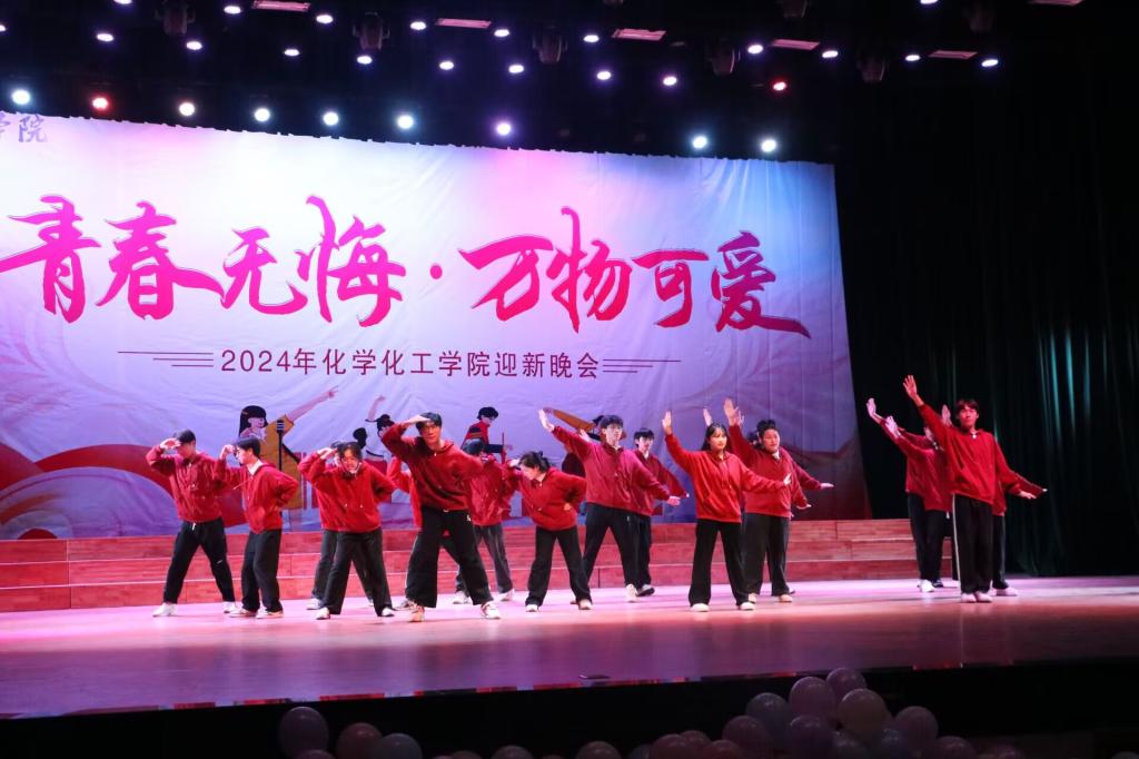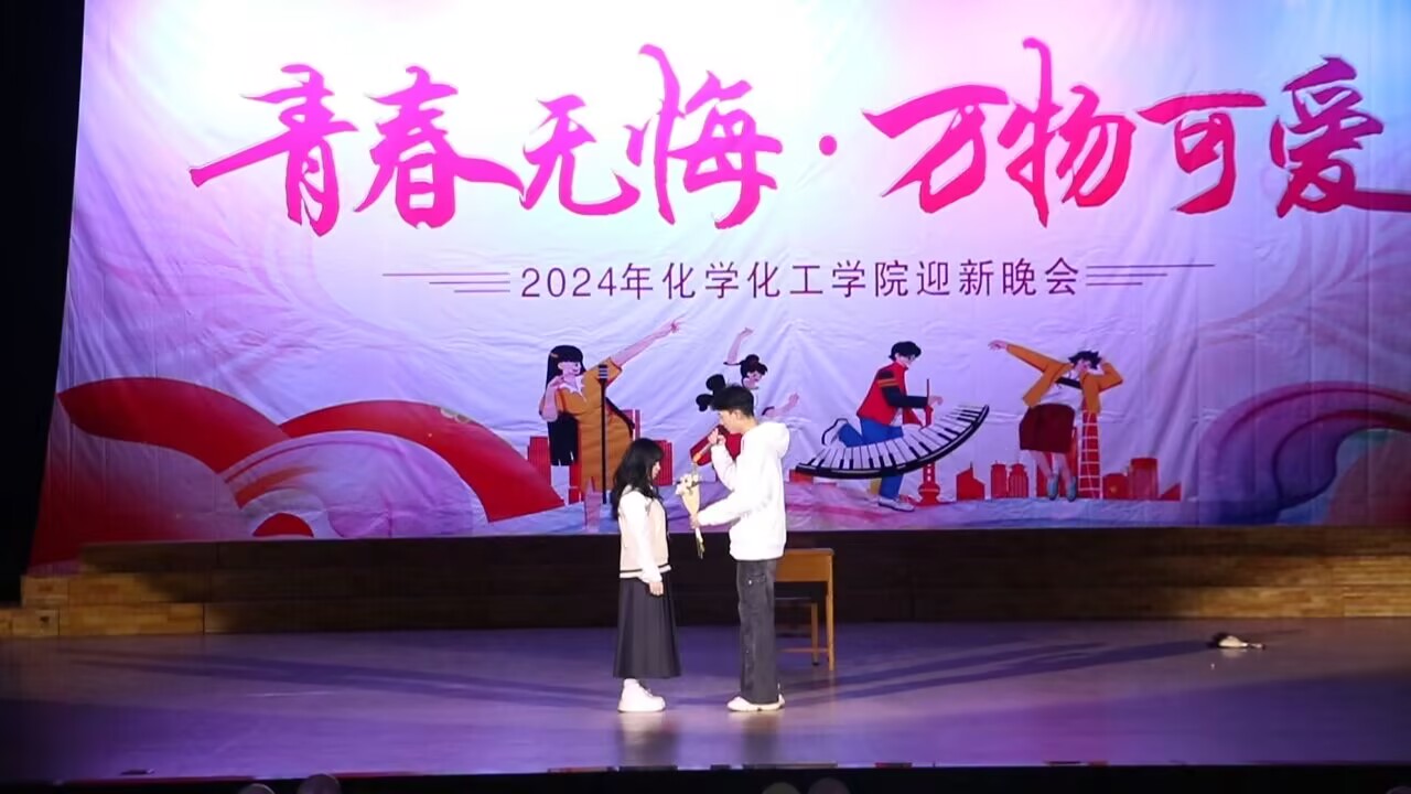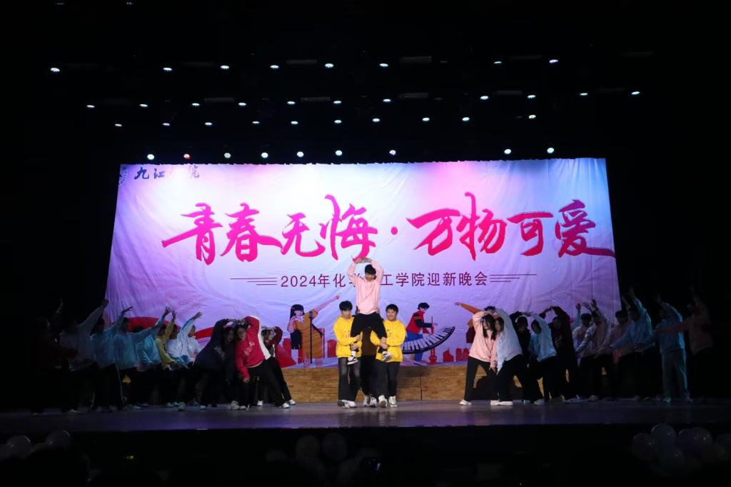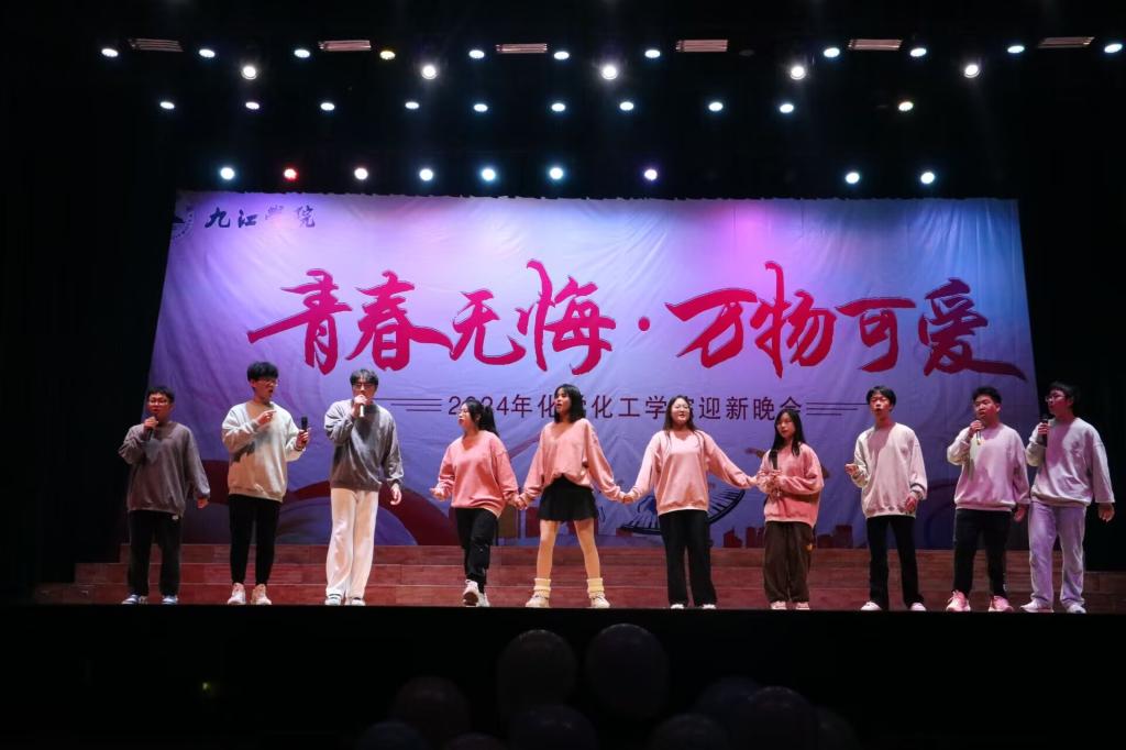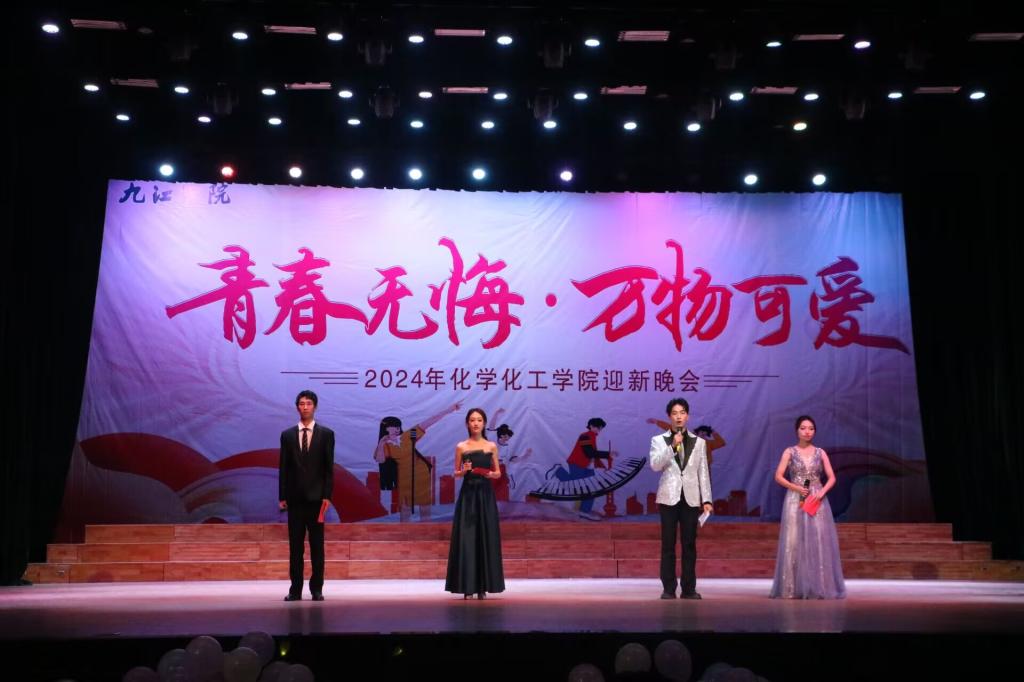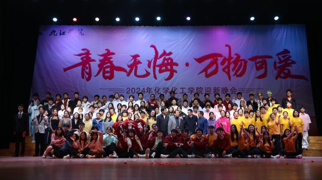 2024年12月1日晚,化学化工学院在南门大礼堂举办了“青春无悔·万物可爱”迎新晚会。九江学院学生处处长吴铃、化学化工学院院长曹小华、党委书记花金龙、党委副书记周玉俊应邀观看演出。迎新晚会化工学院全体同学到场观看,由官弘民、郭昕彤、罗裕皓、李云共同主持。