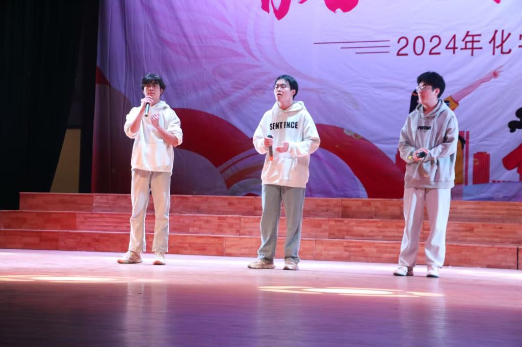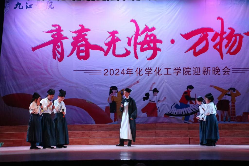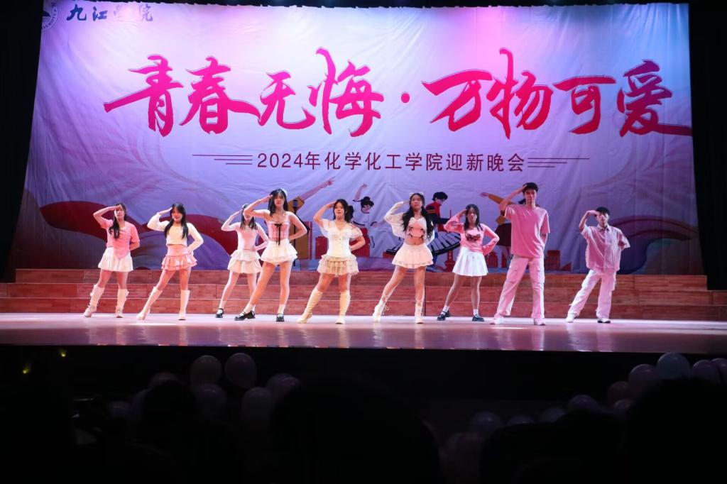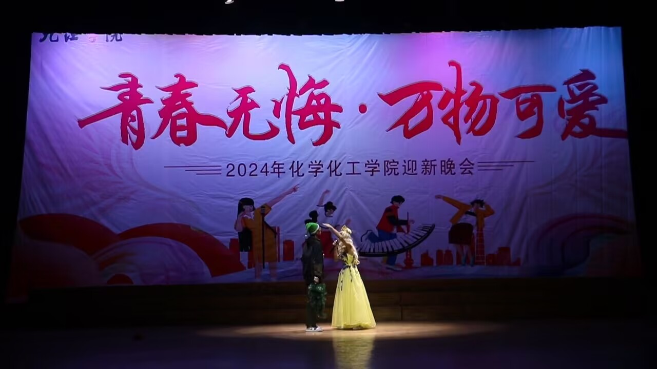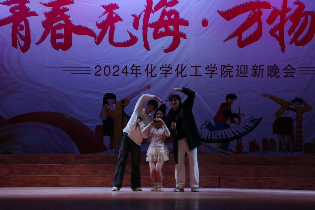 2024年12月1日晚,化学化工学院在南门大礼堂举办了“青春无悔·万物可爱”迎新晚会。九江学院学生处处长吴铃、化学化工学院院长曹小华、党委书记花金龙、党委副书记周玉俊应邀观看演出。迎新晚会化工学院全体同学到场观看,由官弘民、郭昕彤、罗裕皓、李云共同主持。